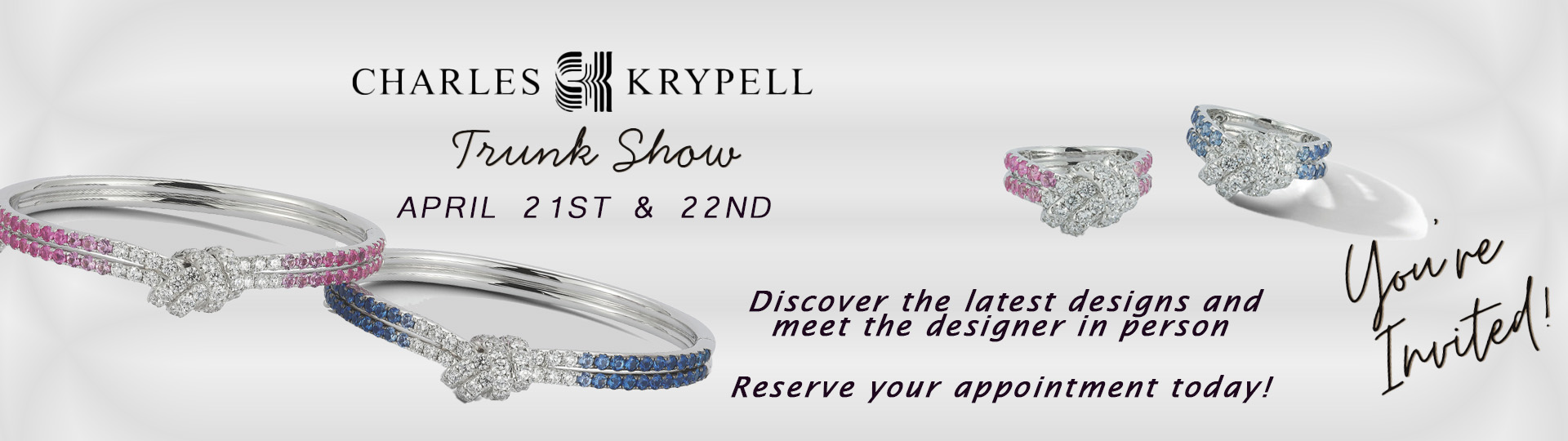 We’re honored to welcome legendary designer Charles Krypell back to Goldsmith Gallery Jewelers on April 21st and 22nd! Join us to meet Charles in person, discover the inspiration behind his remarkable creations, and explore his newest handcrafted collection. Book an appointment to ensure dedicated time with Charles.